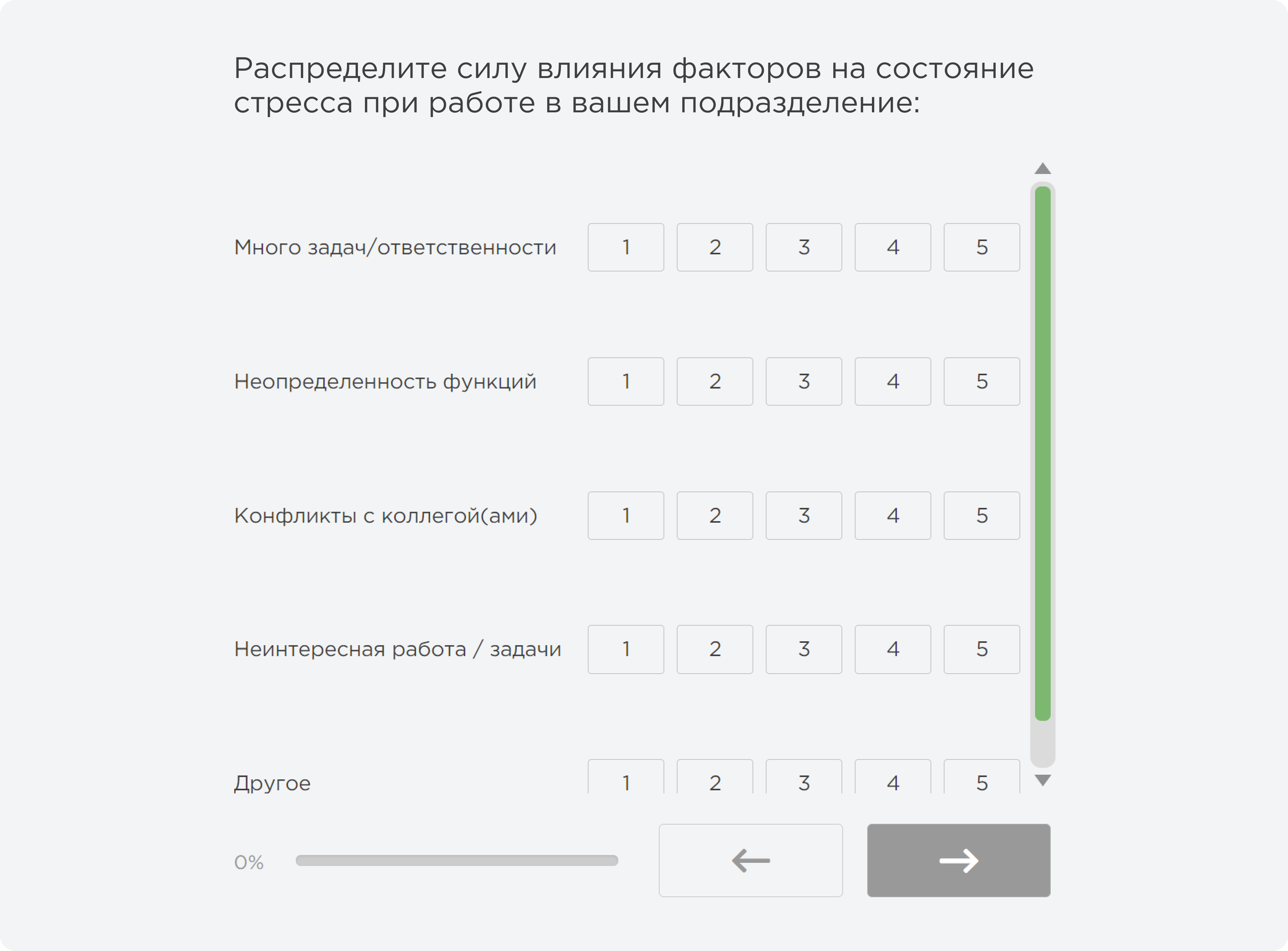 Для выявления факторов стресса воспользуйтесь коротким опросом на онлайн-платформе «Опроскин». Он полностью анонимный, поэтому сотрудники могут не бояться честно отвечать на вопросы.