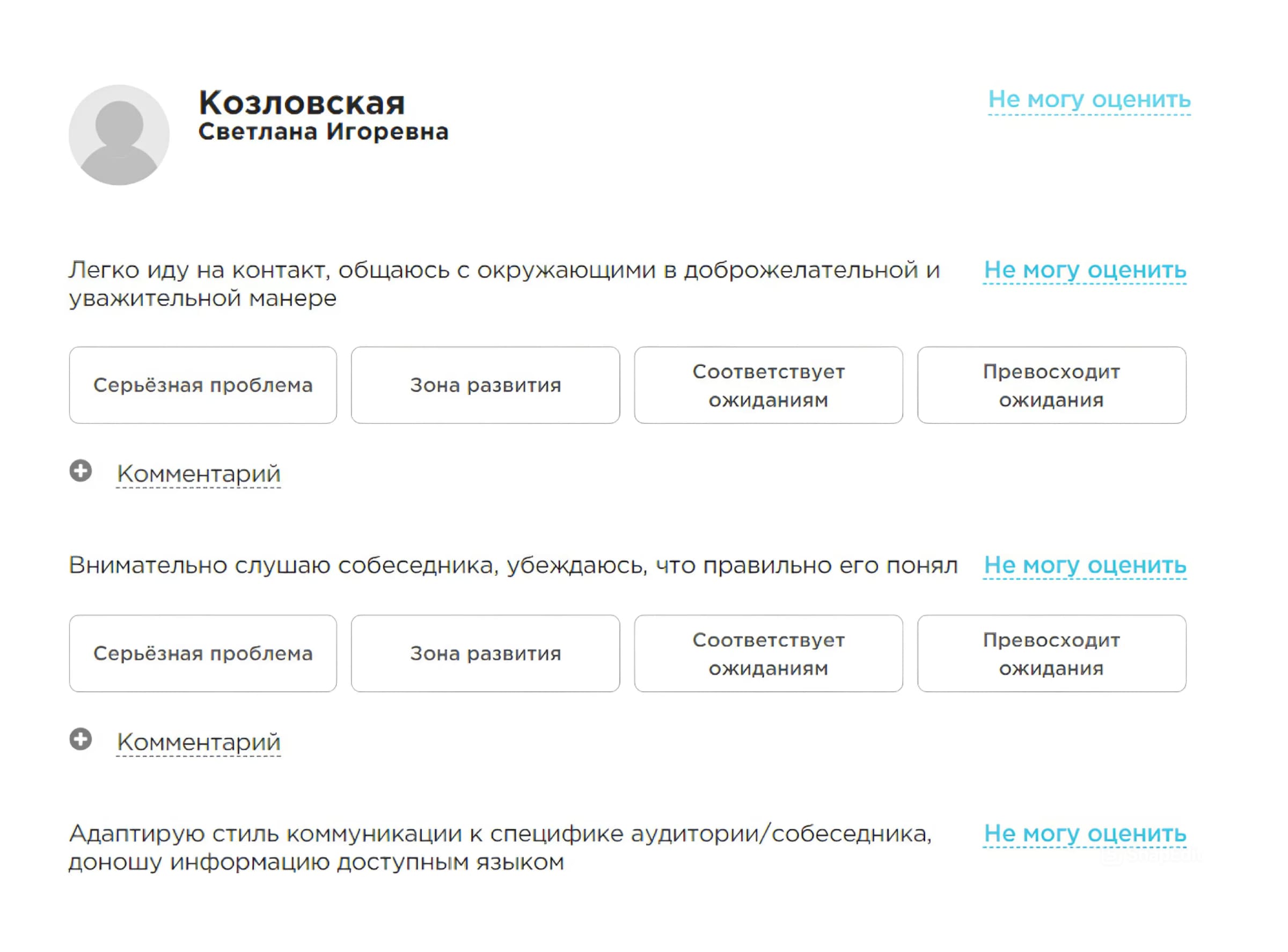 • Интуитивно понятные анкеты. Используйте любую шкалу, понятную вашим сотрудникам и соответствующую корпоративным стандартам.